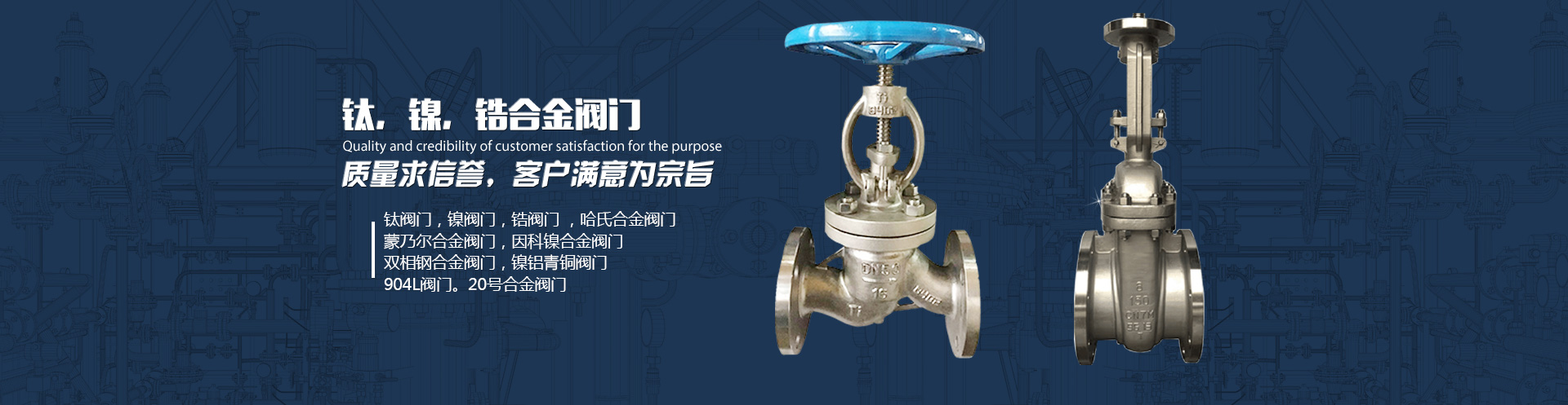 公司的主導(dǎo)產(chǎn)品特殊材料系列閥門(mén)有:鈦和鈦合金系列閥門(mén)、鎳及鎳合金系列閥門(mén)(哈氏合金、蒙乃爾合金、英科乃爾合金)、鈦閥門(mén)、鈦合金閥門(mén)、鈦球閥 ,鋯材、鉭材、雙相鋼、C4鋼、ALLOY20合金及鎳基合金閥門(mén)等......?查看詳情>>